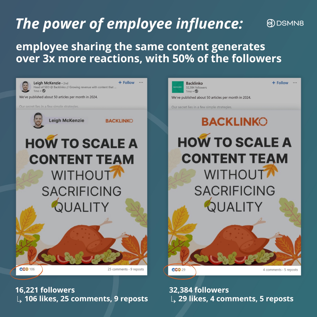 Over 3x the number of reactions and over 5x the comments… with half the number of followers as the company page 👏