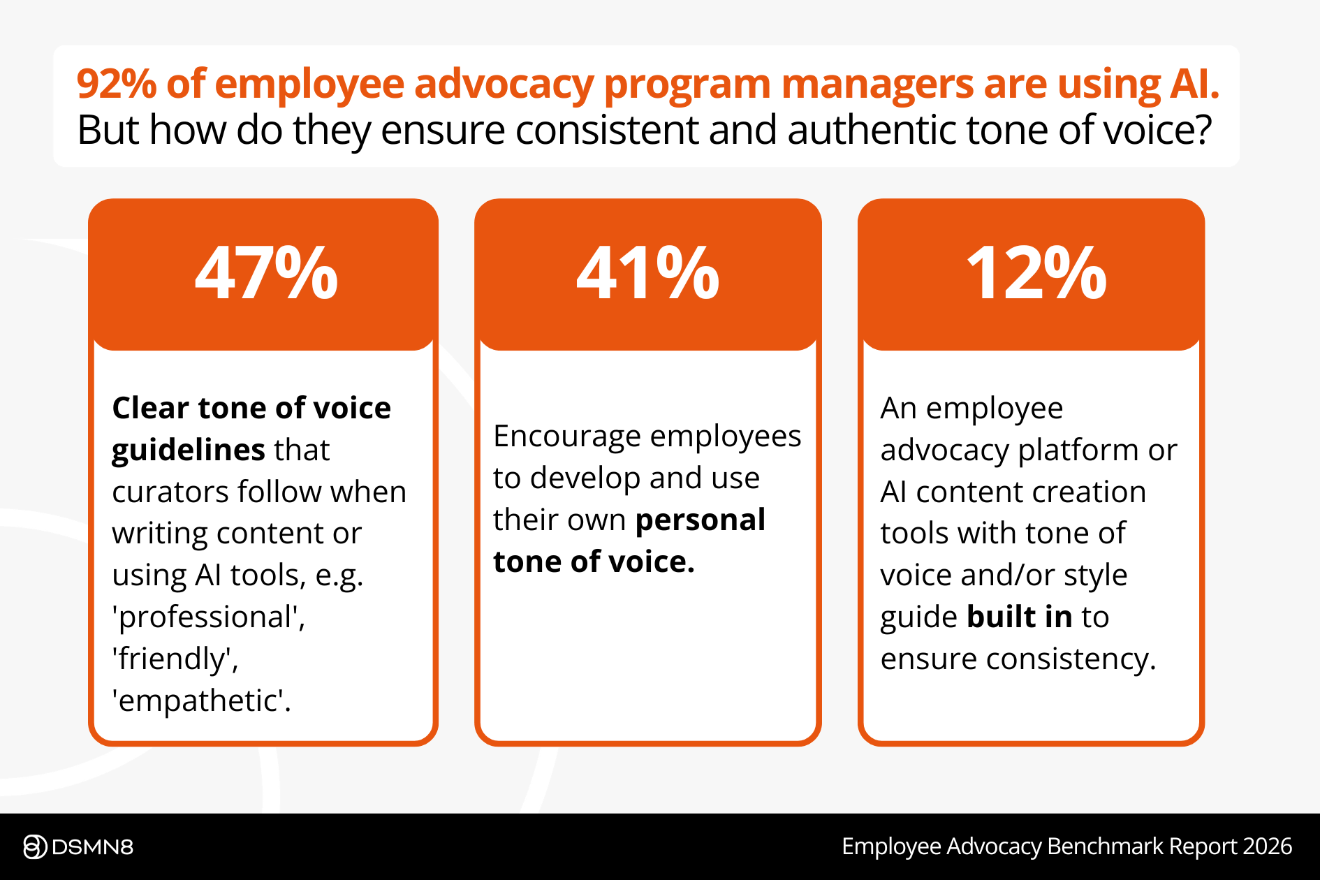 92% of employee advocacy program managers are now using AI to scale content creation, and a further 7% plan to do so.
