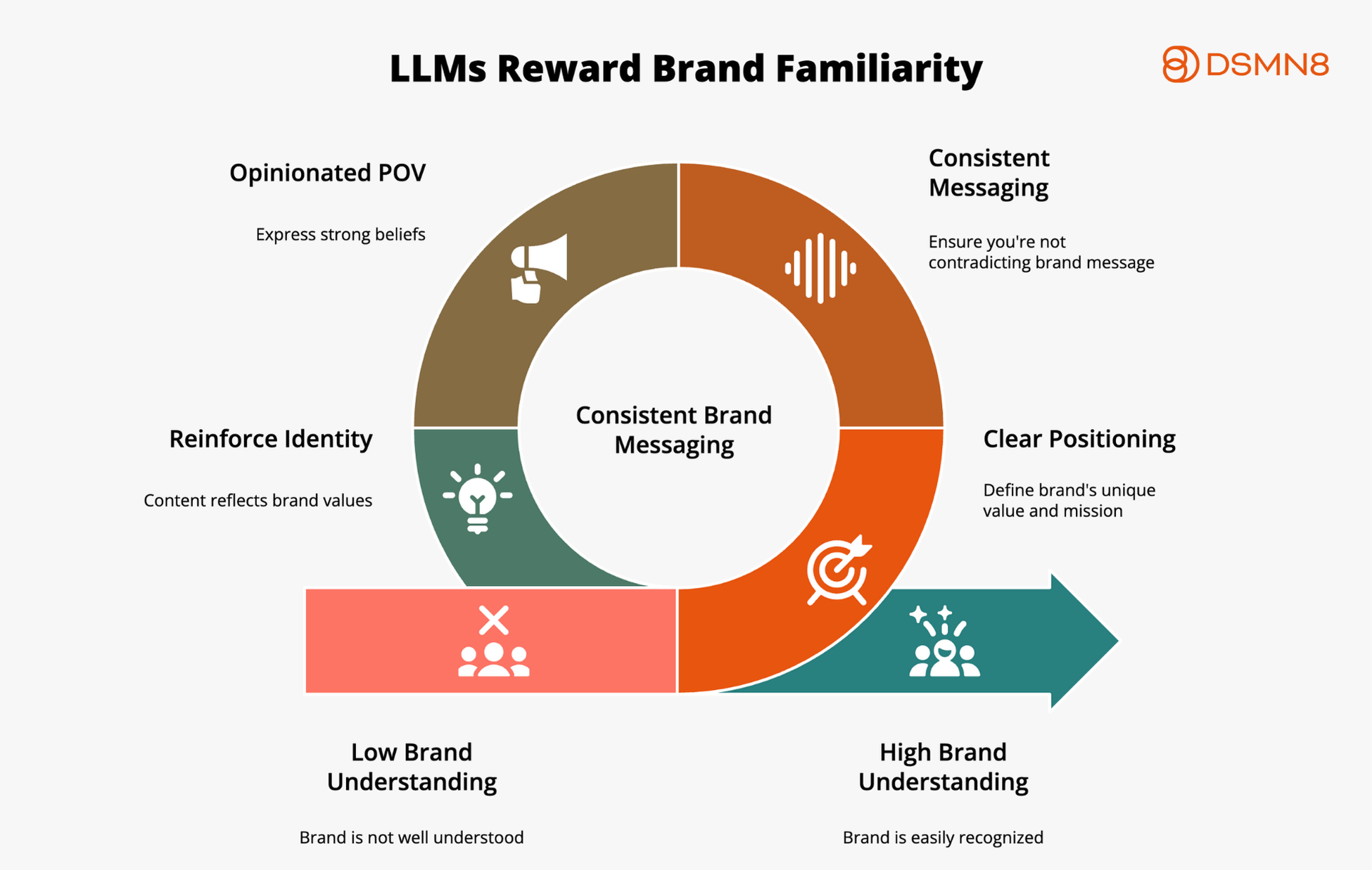 If a brand isn’t recognized, remembered, or talked about, it simply doesn’t surface – whether that’s in an LLM response, a buying committee conversation, or a LinkedIn feed.