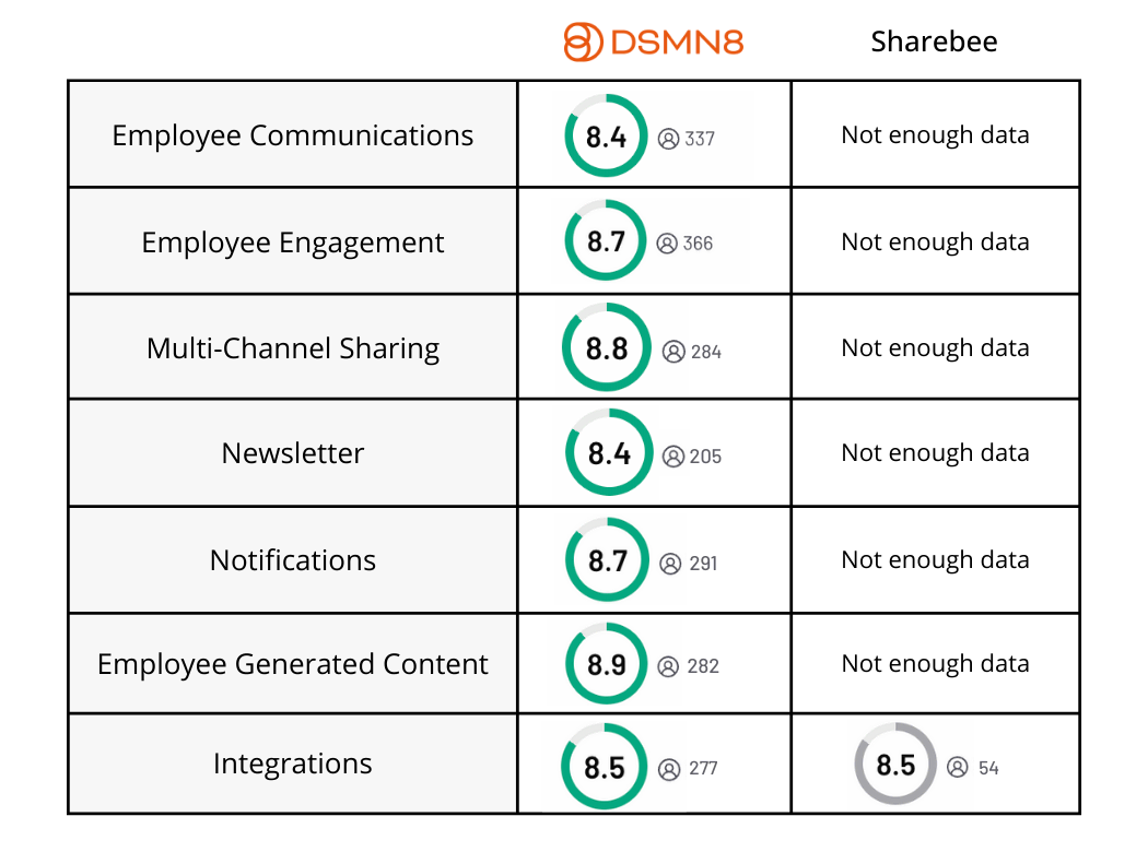 • Focus & Expertise. DSMN8’s customer success managers are celebrated for their employee advocacy experience, tailored training, and outstanding support. Rated #1 by G2 users for ease of setup and admin, we’re committed to making employee advocacy easy.